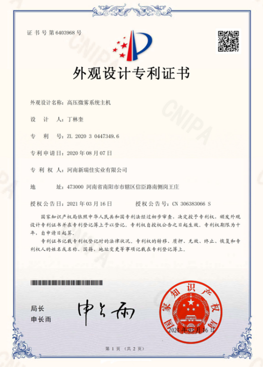 瑞佳环境商标证书